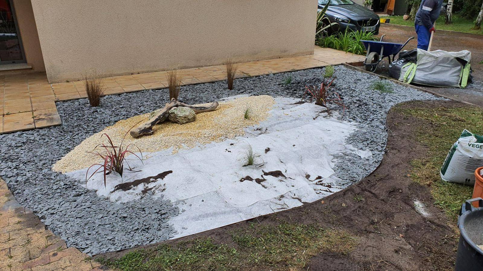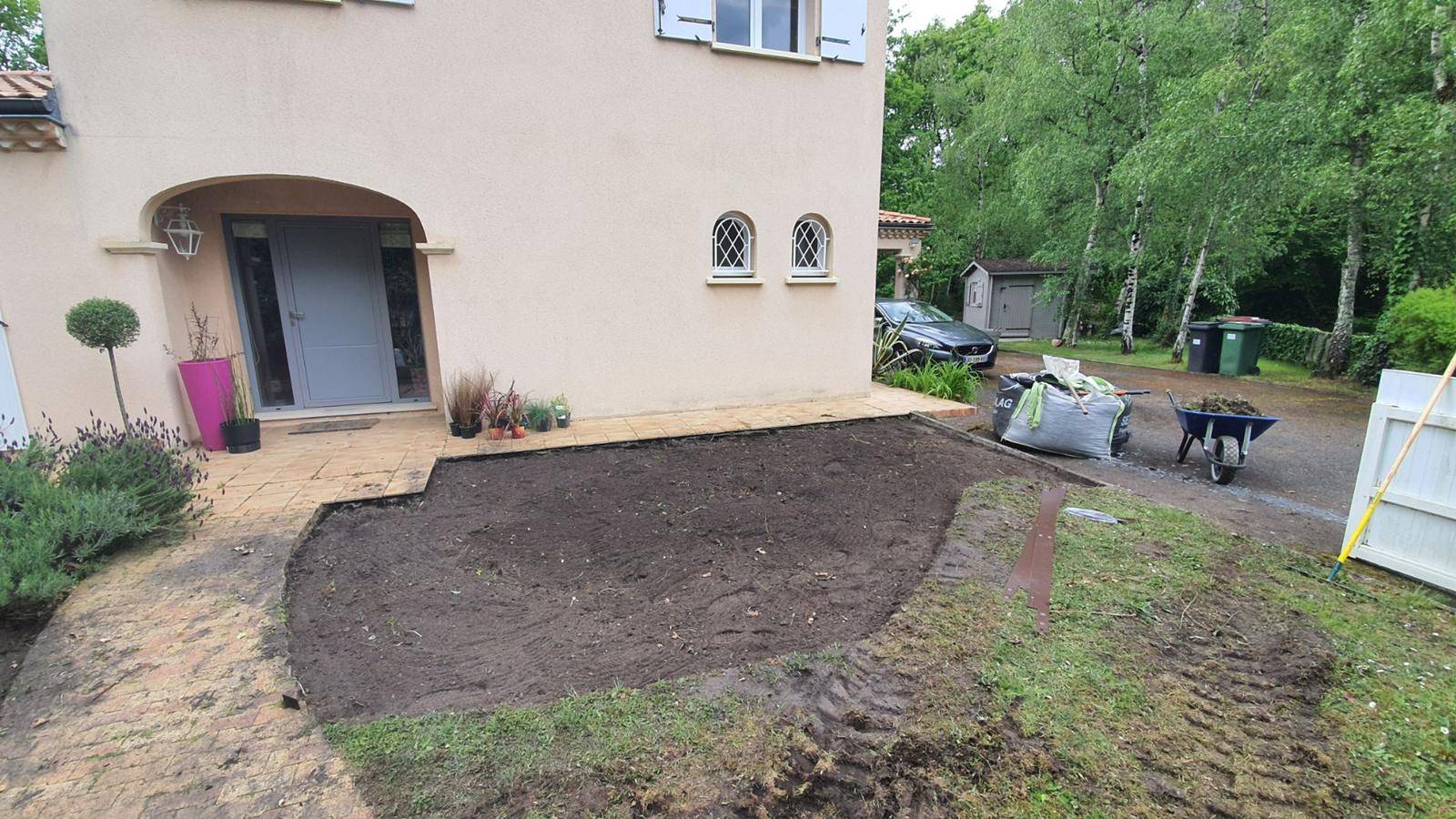 Nous avons ensuite apporté de la terre végétale, puis nos paysagistes ont posé un