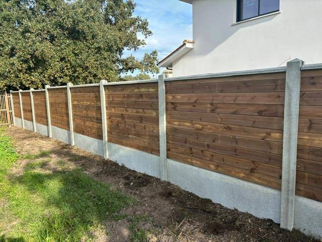 La société AQUITAINE CLÔTURE vous propose la fourniture et pose de clôtures mixtes bois-béton.