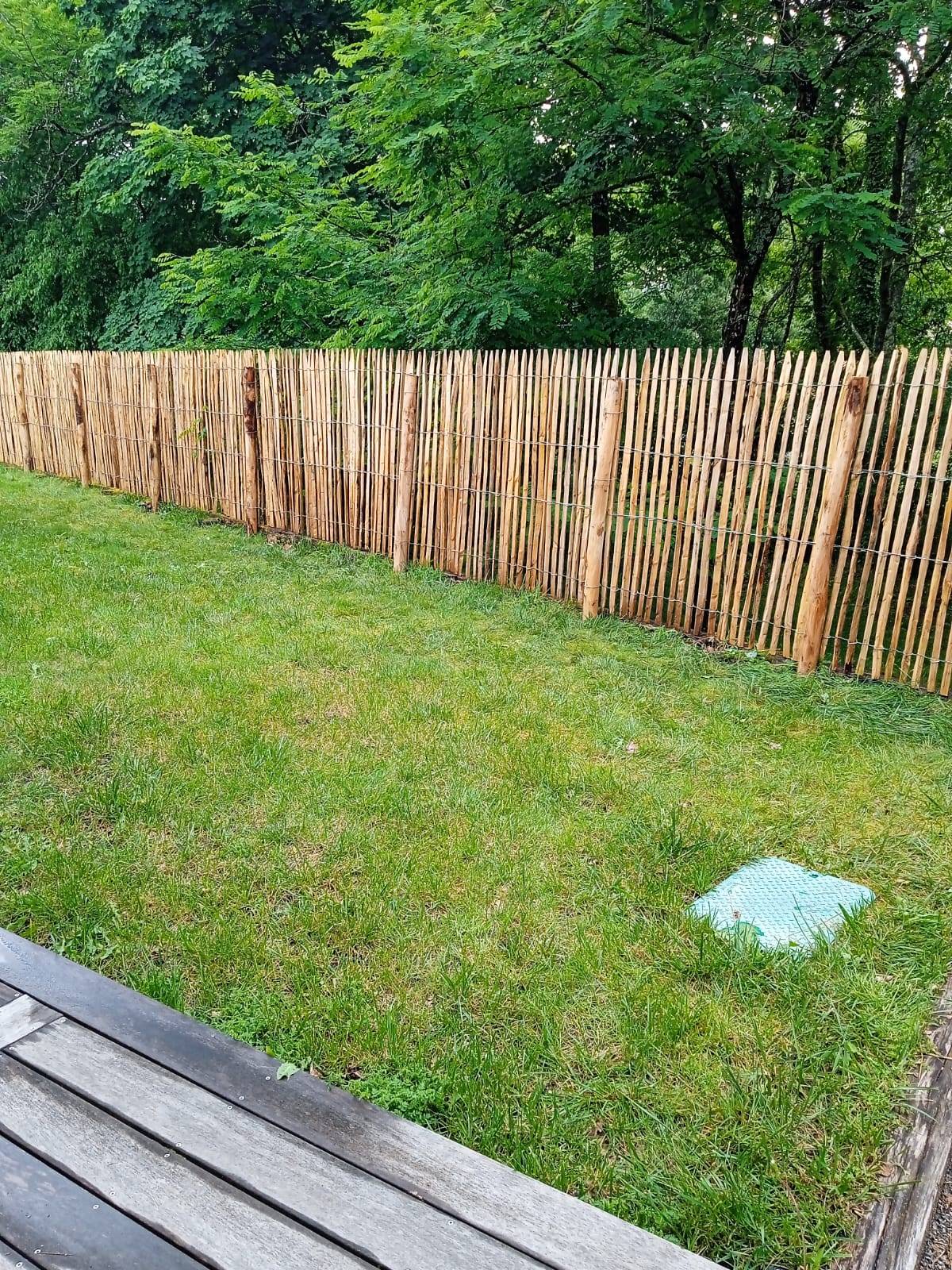 Spécialiste de la pose de clôture de jardin, AQUITAINE CLÔTURE, société installée près de Bordeaux, vous accompagne dans la création, la rénovation et le remplacement de clôtures. En tant qu’installateur de clôture ganivelle, nous garantissons une mise en œuvre soignée avec piquets en bois robustes et alignement précis.