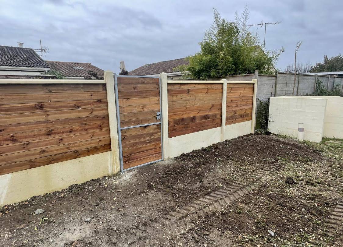 La pose d'une clôture mixte bois béton sur Lacanau par un