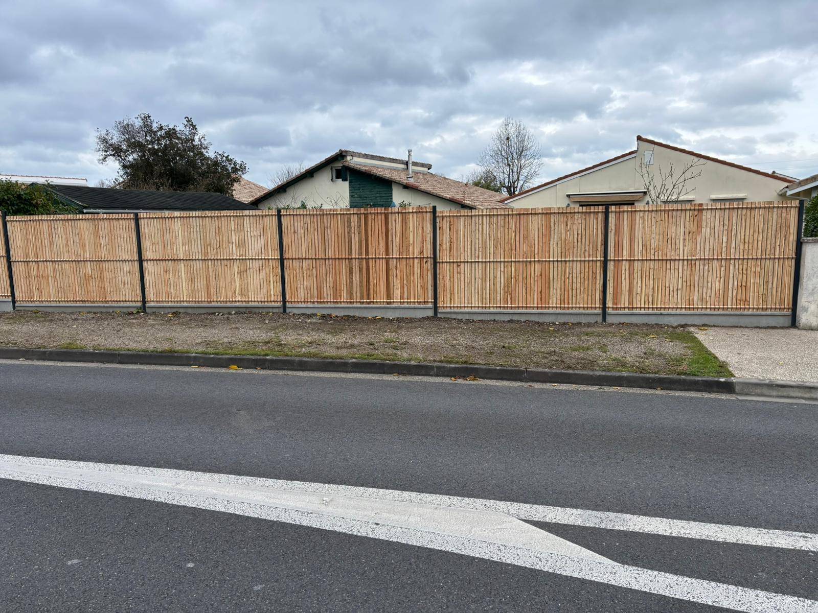 Après : une clôture moderne, rectiligne, occultante et sans entretien, qui redonne tout son cachet au jardin et une vraie valeur ajoutée à la maison.