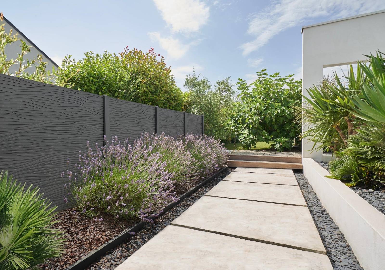 La clôture en béton décorative finition COSTA est LA solution parfaite. À la fois esthétique, 100 % occultante et résistante, elle est idéale pour dire adieu aux regards curieux et aux vents capricieux… avec panache !